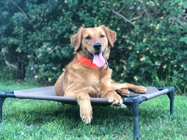 Mavis believes in doing everything with a bit of style, sass and spice. From dock diving and duck hunting to walks and cuddles with her people, she has an all or nothing attitude. Mavis has a medium drive, making her the perfect weekend warrior and family dog. She has a smaller frame, topping out at 50 pounds. Her dark red, medium length coat has a bit of a curl and is easy to care for.